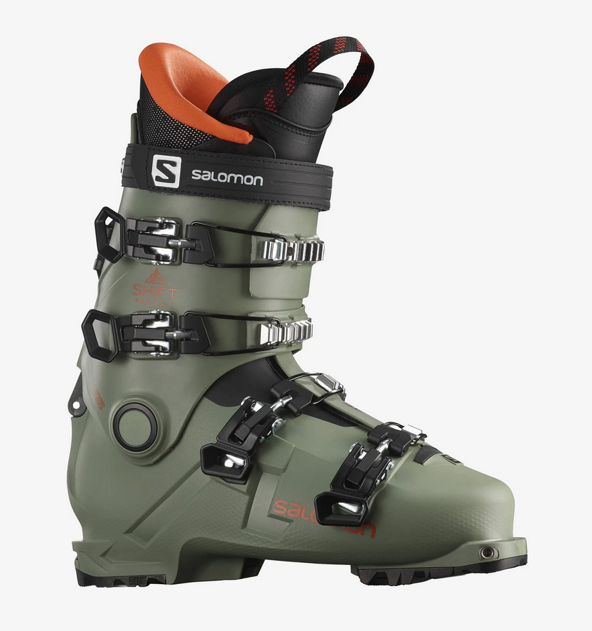Sale-20%SALOMONShift Pro 80T(0) C$319.00 C$399.00Excl. tax-20% In stock Color: *Oil Green/BlackSize: *27/27.5Add to cartLogin for wishlistPay directDescriptionShareDeveloped to help young riders boost their potential, Salomon's SHIFT PRO 80T AT adapts the technologies and fit of an adult boot to younger feet. It's Gripwalk premounted for more safety grip & walking comfort. Facebook WhatsappAdd to comparison list